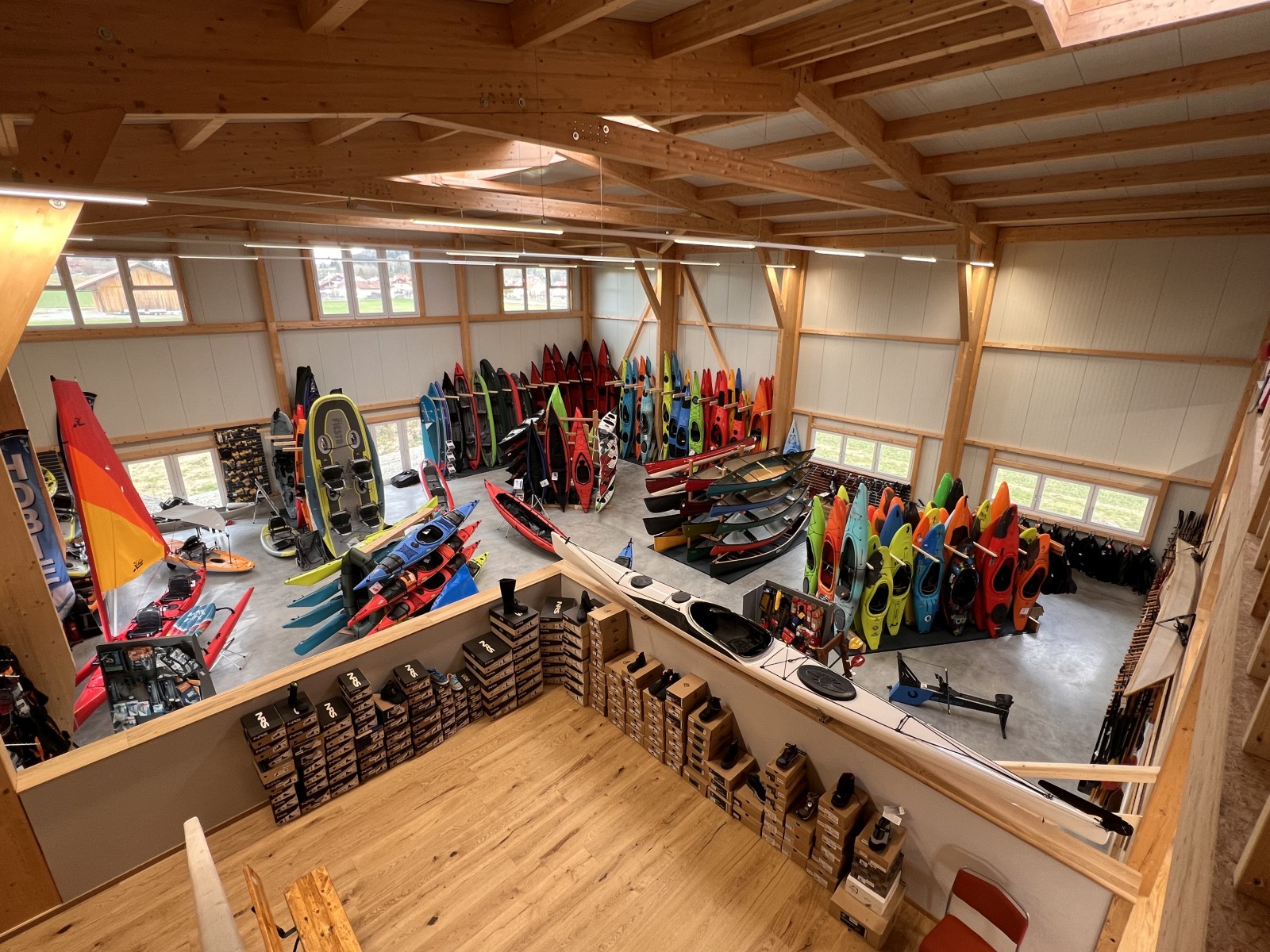 In unserem Ladengeschäft in Peiting erwartet dich die größte Boots-Ausstellung Oberbayerns mit mehr als hundert Booten zum Anfassen, Zebehör für jedes Abenteuer und einem ganzen Stockwerk voller Paddelbekleidung!
