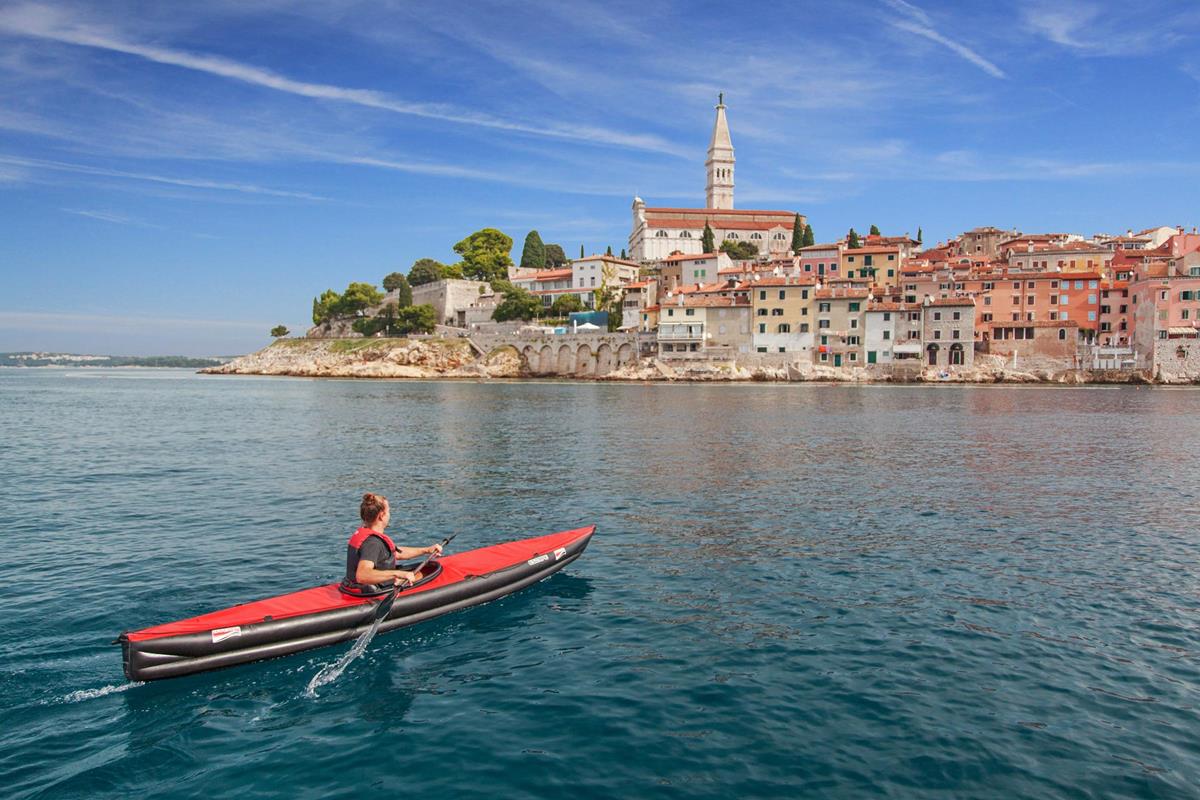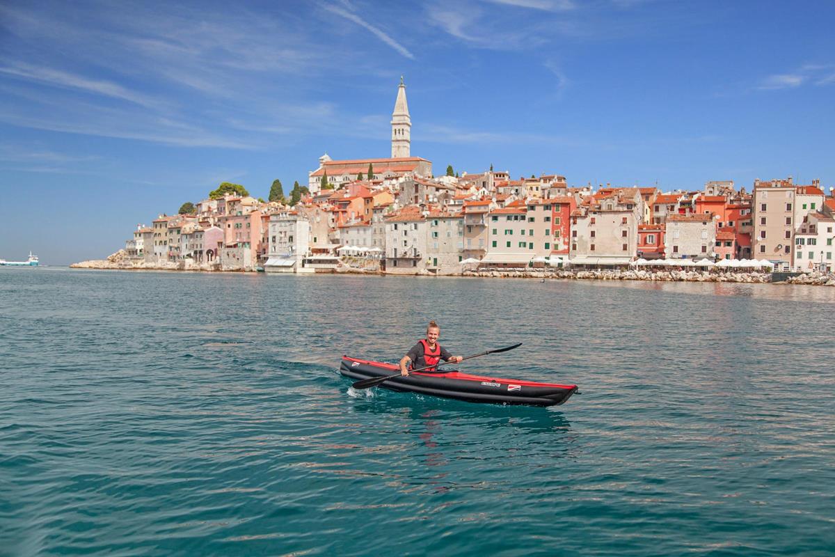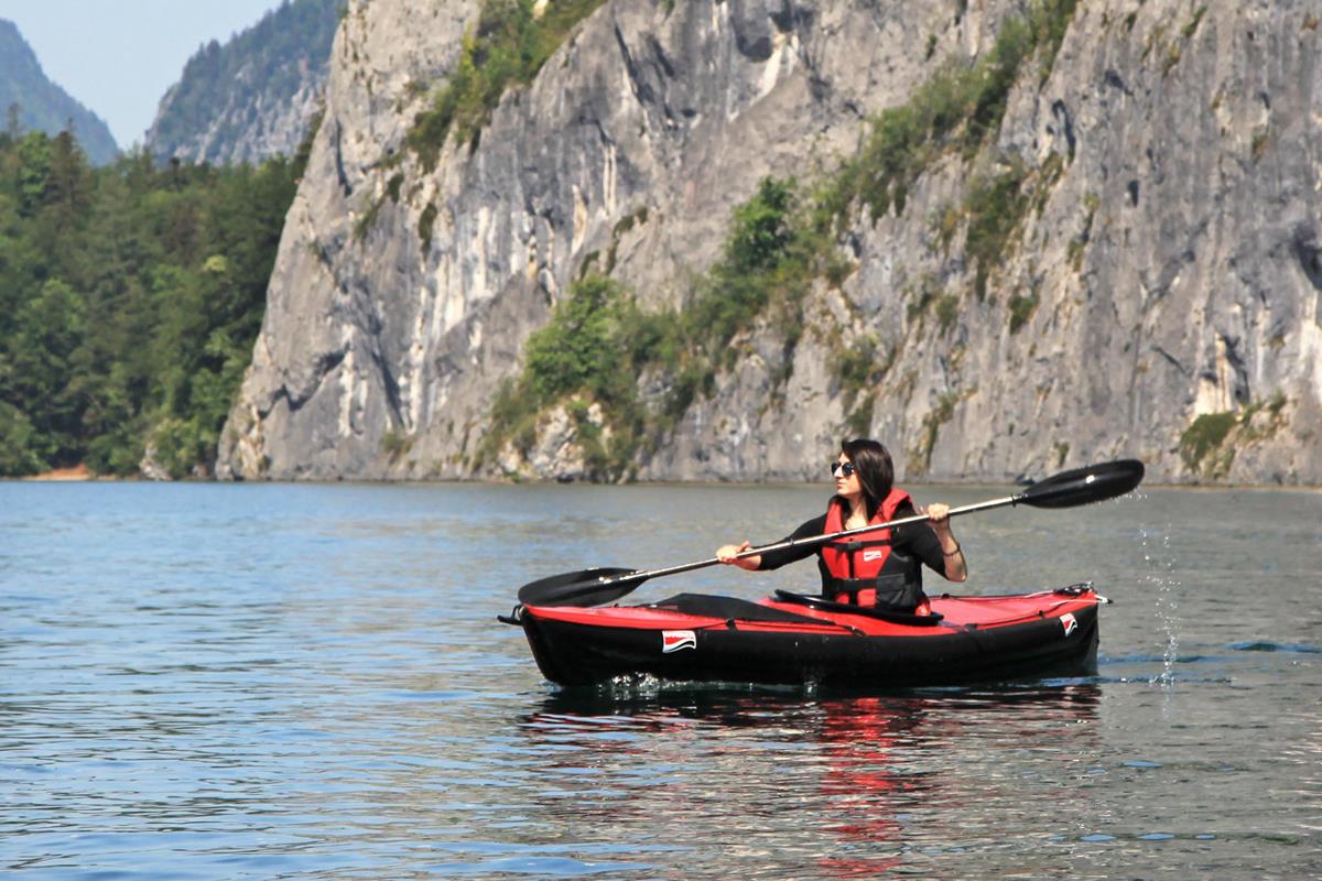 Auf Fluss, See und Meer. Das professionelle Boot für Solopaddler ist ein reinrassiges Tourenkajak für Flüsse, Seen und Küstenabstecher rund ums Ferienparadies. Dank reichlichem Stauraum eignet sich das aufblasbare Kajak perfekt für mehrtägige Touren am großen Strom. Der perfekte Urlaubstraum aus dem Kofferraum, der auch im Zug- oder Fluggepäck Platz findet. Aufpumpen und darauf abfahren – das universelle Reisekajak für viele Ziele.