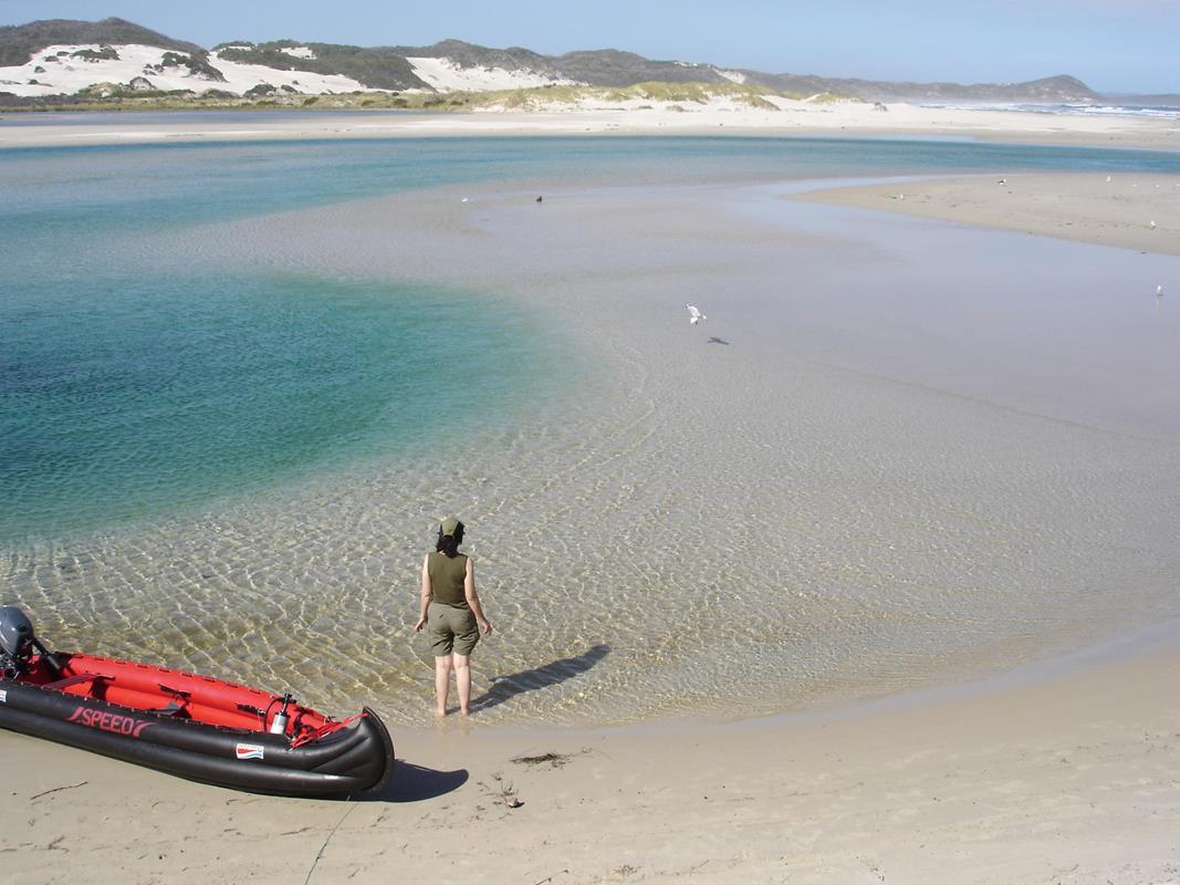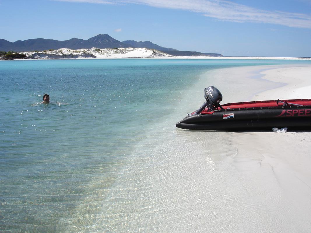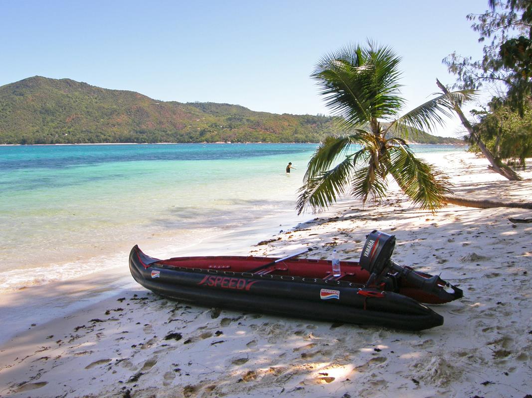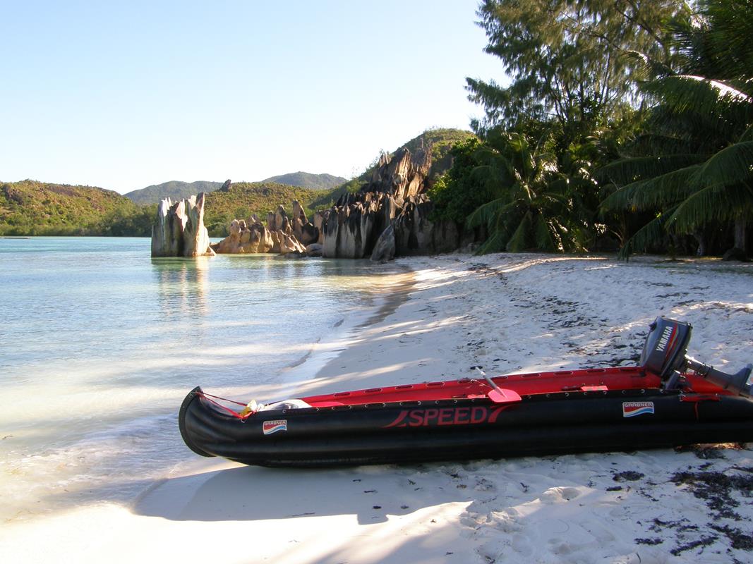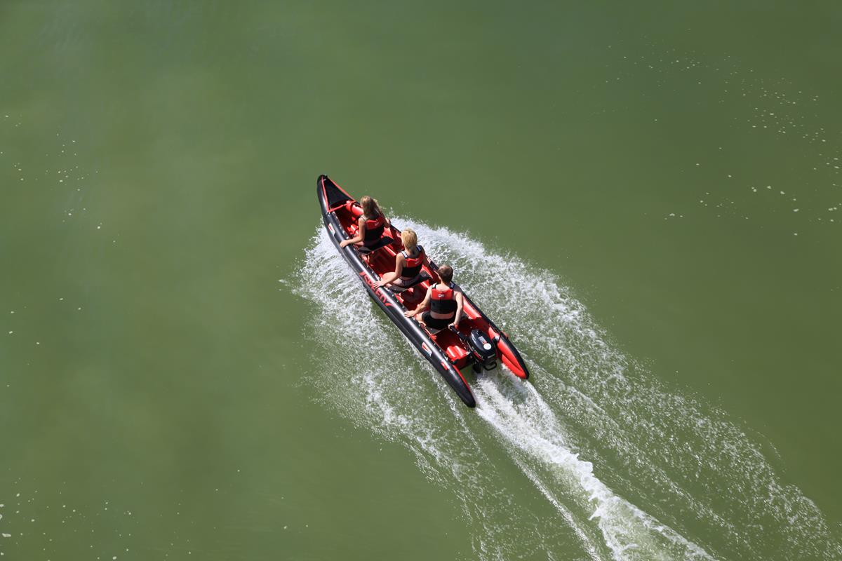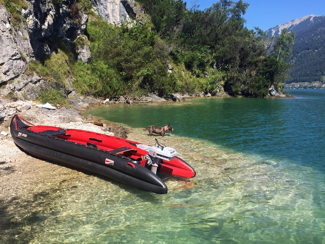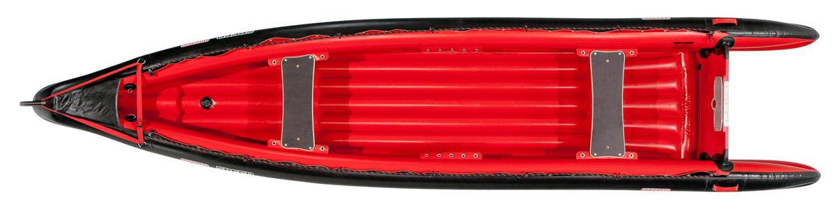 Der nach unten versetzte Boden mit abgeflachten Seitenübergängen gewährleistet gute Spurtreue des Schlauchkanus.