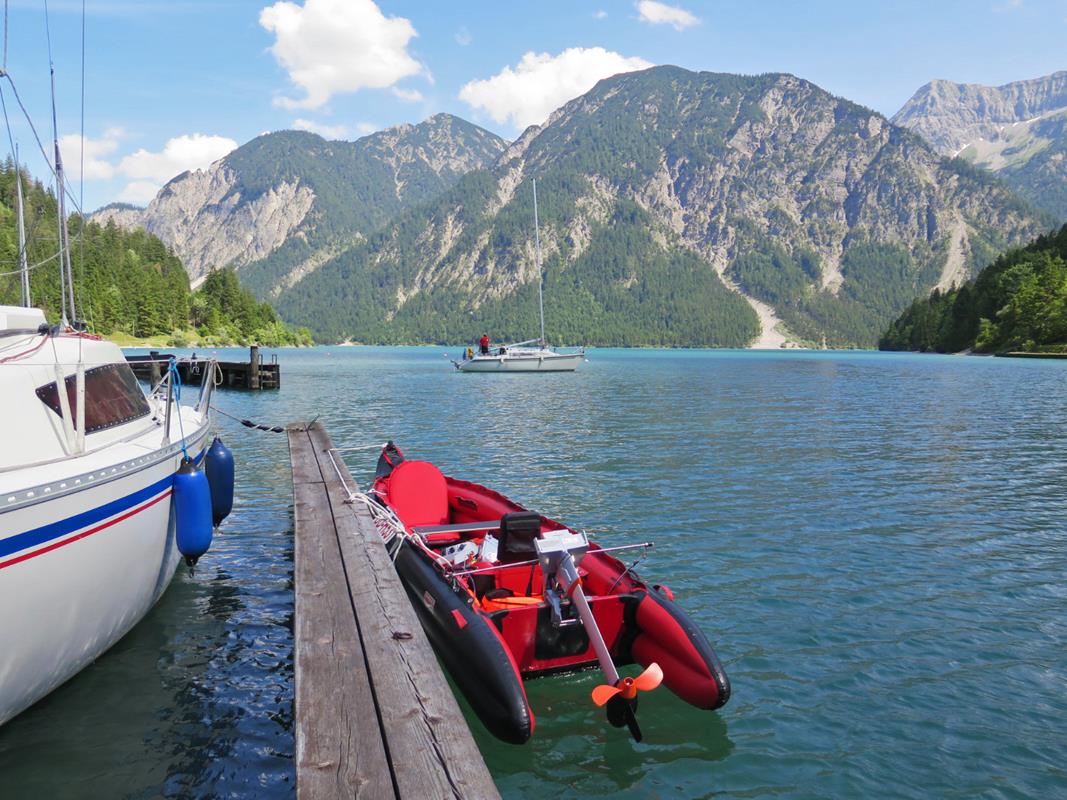 Der stabile Motorspiegel nimmt umweltfreundliche Elektromotoren genauso auf wie einen 6 PS Benzinmotor: Die Kraft des Antriebs wirkt mittig auf das Boot und schafft effizienten Vortrieb für bis zu 25 km/h Gleitfahrt. Die Lenzöffnung saugt Spritzwasser während der Fahrt ins Freie und wird bei „Stillstand“ wieder geschlossen.