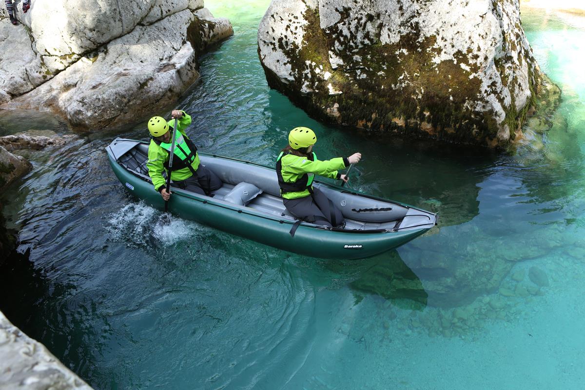 Der selbstlenzende Kanadier BARAKA eignet sich sowohl für Wander- als auch für anspruchsvollere Wildwasserfahrten. Der stabile Rumpf erleichtert nicht nur Anfängern das Durchfahren von Stromschnellen. Der großzügige Innenraum bietet Platz für 2 Erwachsene und 1 Kind. Des Weiteren ist das BARAKA mit weiteren nützlichen Ausstattungsdetails wie Schenkelgurte, Pumpenhalter und Gepäckschlaufen ausgestattet.