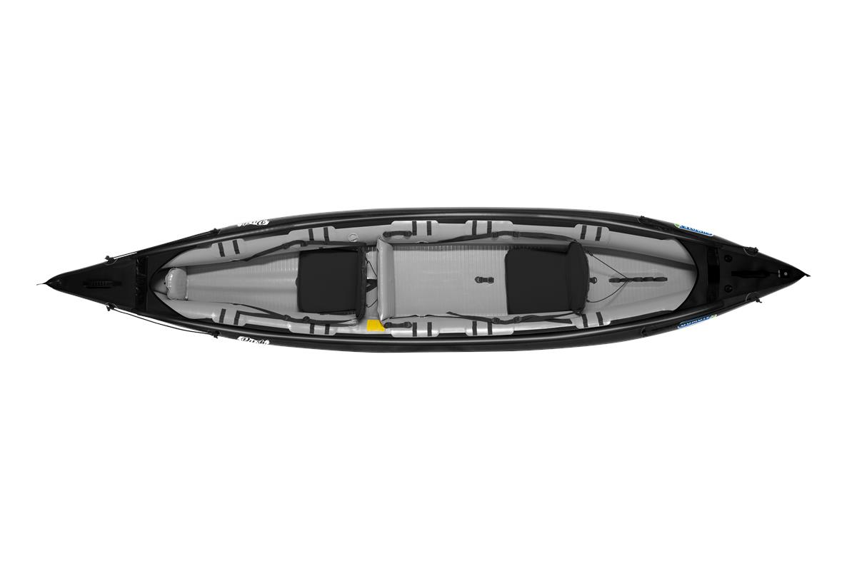 Eine Buglänge voraus! Die innovative Hybrid-Konstruktion aus Luftkammer-System und stabilisierender Drop-Stitch Technologie, verleiht dem aufblasbaren Kajak seine einzigartige hydrodynamische Form und Steifigkeit. Das Ergebnis: Eine exzellente Wasserlage, leichte Manövrierbarkeit und schnelle Laufeigenschaft. Nicht nur auf dem Wasser lässt es sich leicht manövrieren: Auch an Land ist es, dank geringem Gewicht und kleinem Packmaß, einfach zu transportieren.