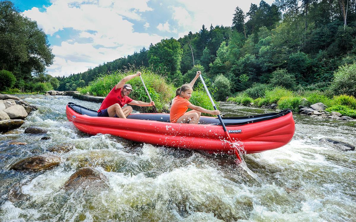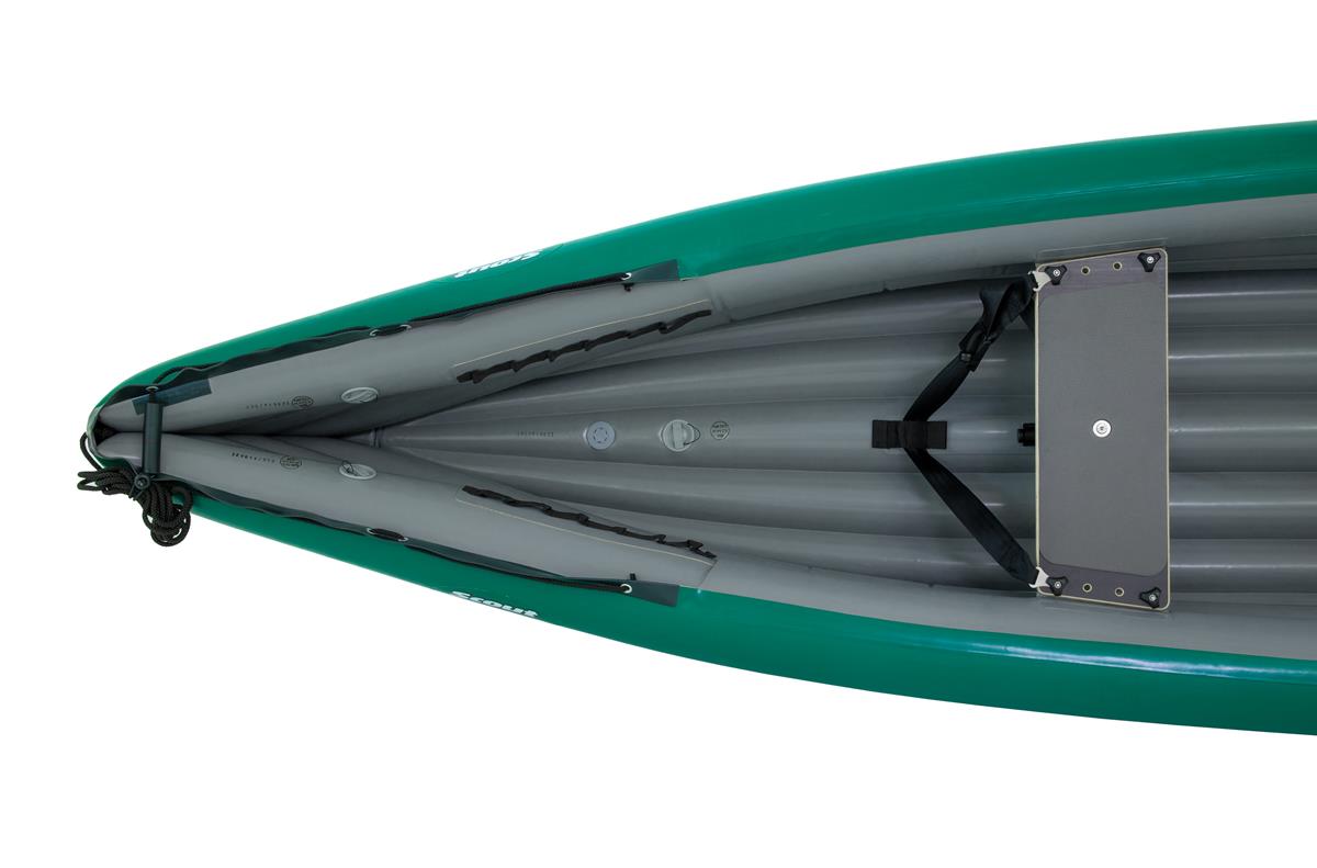 Der Schlauch-Kanadier SCOUT überzeugt mit einem großzügigen Innenraum, einem hohen Zuladungsgewicht und ausgewogenen Fahreigenschaften. Das alles werden sowohl die Abenteurer bei langen Fahrten mit viel Gepäck, als auch Adrenalin-Junkies bei Wildwasserfahrten sowie Familien mit Kindern bei behaglichen Spazierfahrten schätzen. Der SCOUT ist in den Ausführungen Standard und Economy (S/E) erhältlich. Die Standard Ausführung ist ein innovatives System mit sog. T-BONE-Streben, wodurch Stabilität des Bootes verbessert wird. So wird eine ähnliche Stabilität wie bei einem Festboot erreicht.