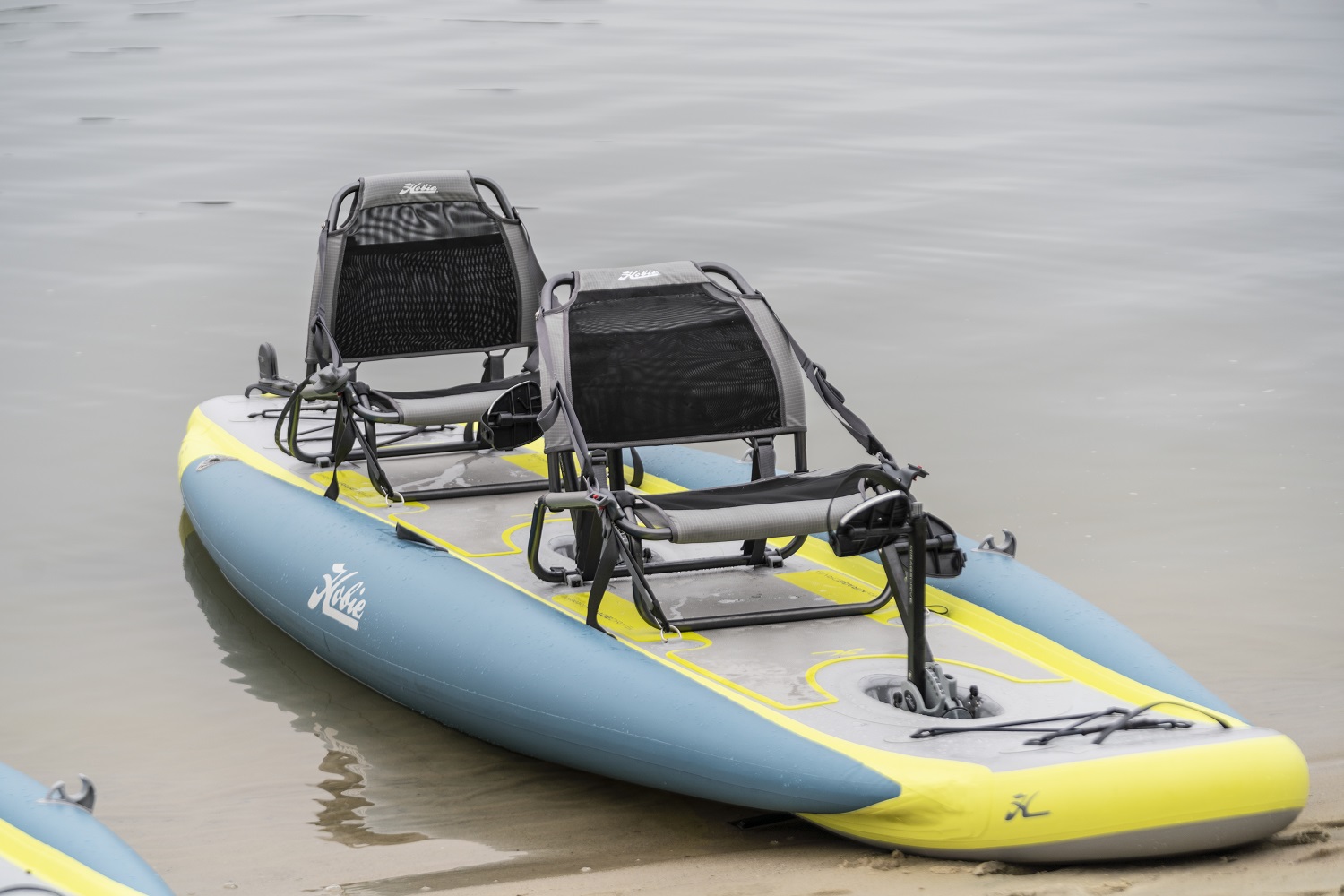 - Das Hobie Mirage iTrek 14 Duo verfügt über drei separate Luftkammern, die für zusätzliche Stabilität und Sicherheit sorgen. Sollte eine Kammer einmal beschädigt werden – beispielsweise durch Angelhaken oder andere spitze Gegenstände – bieten die verbleibenden Kammern weiterhin ausreichend Auftrieb, damit Sie sicher zurück ans Ufer gelangen. Dies macht das iTrek 14 Duo insbesondere für Angler noch zuverlässiger.