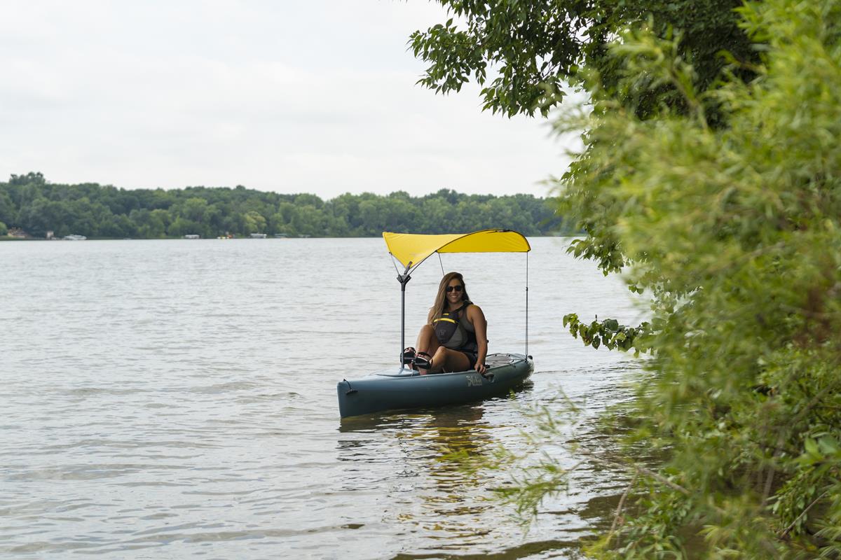 Alternativ können Sie in die Segelaufnahme das Hobie Bimini (Sonnendach) einsetzen. Dieses sorgt für angenehmen Schatten und erhöht den Komfort bei längeren Touren oder an heißen Tagen.