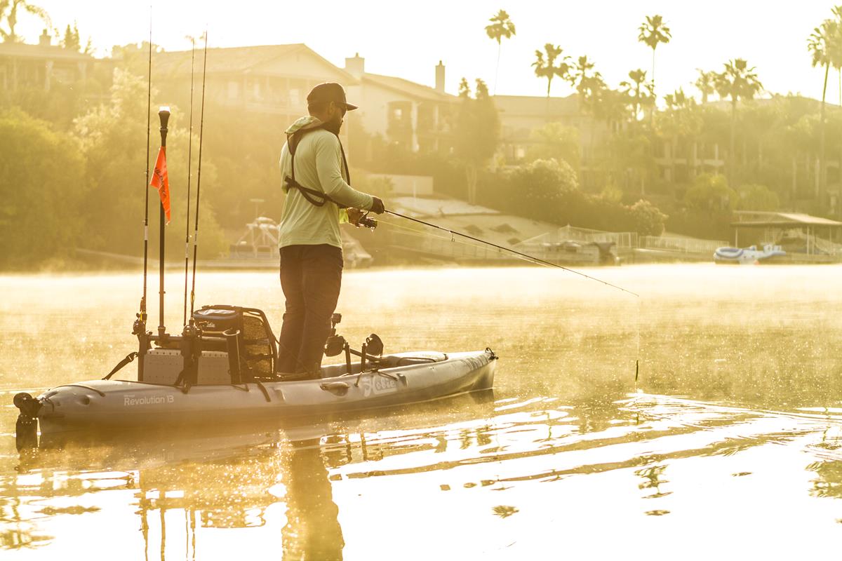 Das Revolution 13 ist mit dem MirageDrive 180 ausgestattet – einem einzigartigen Pedalantrieb, der Vorwärts- und Rückwärtsbewegungen ermöglicht. Ab dem Modelljahr 2020 wird das Antriebssystem serienmäßig mit der Kick-Up-Fin-Technologie geliefert, welche das Kajak noch robuster und alltagstauglicher macht.