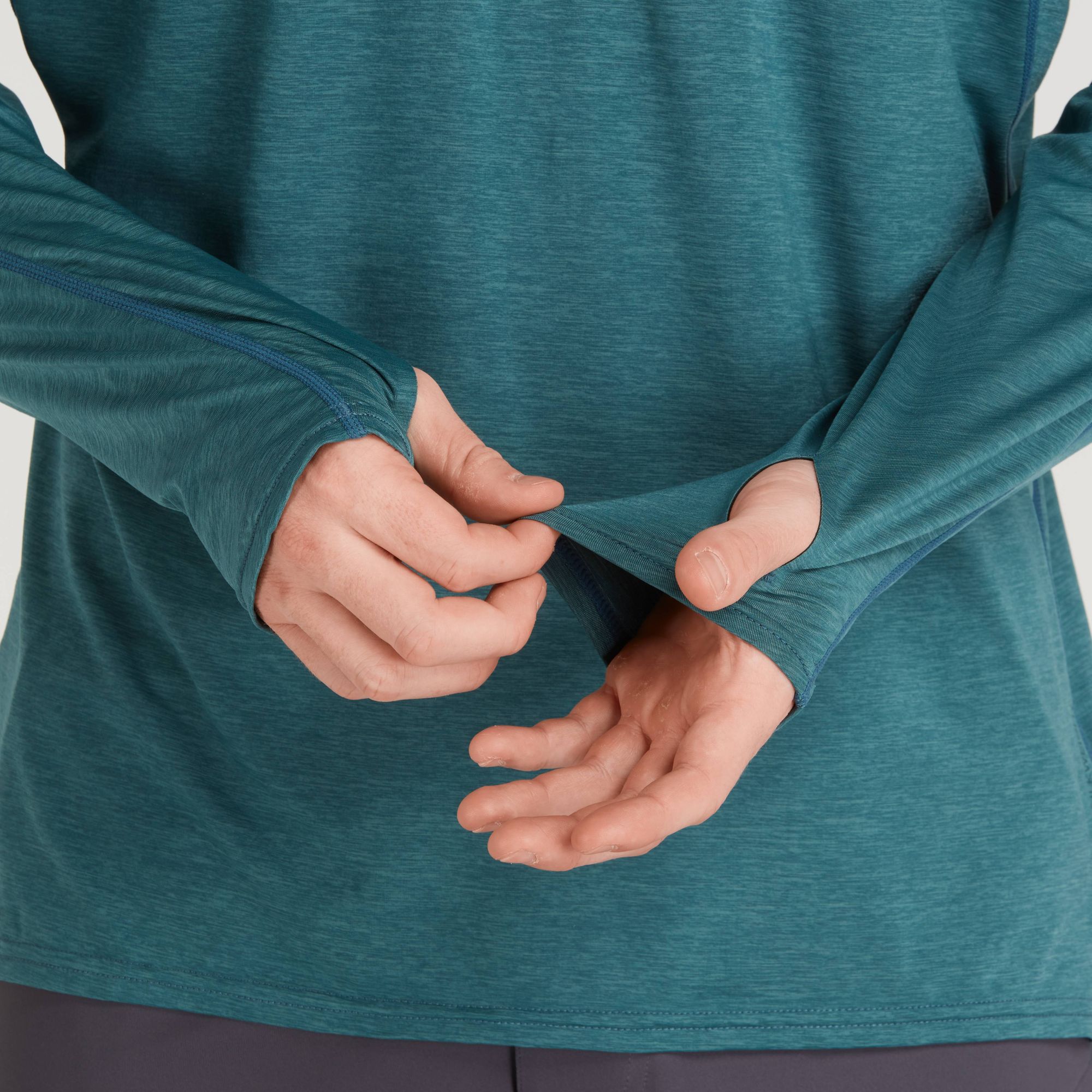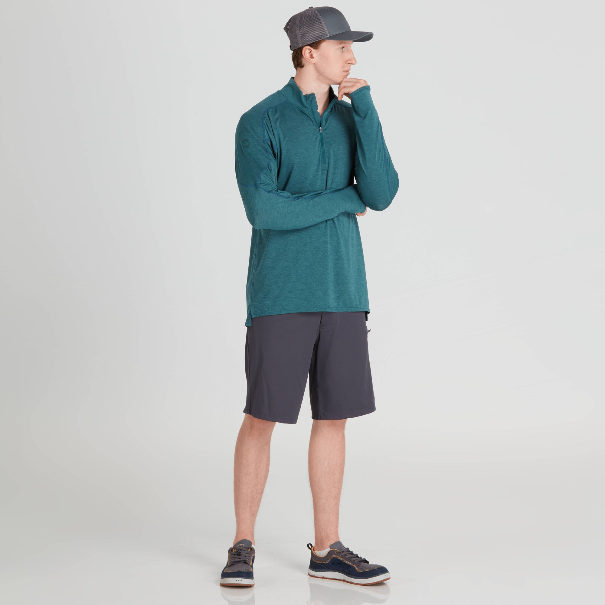 Das NRS Silkweight Baja Sun Shirt für Herren vereint Stil, Komfort und Leistung und erweitert den Sonnenschutz mit einem höheren Kragen und Daumenlöchern auf Hals und Hände. Während ein Viertelreißverschluss an heißen Tagen für schnelle Belüftung sorgt.