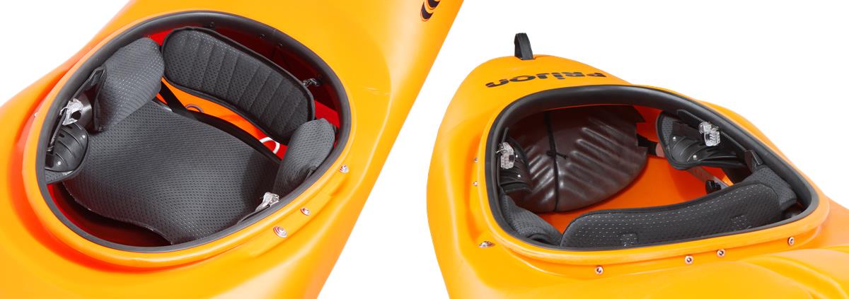Der Prijon 2B Wildwasser-Zweier bietet die Möglichkeit, mit einem optionalen Kindersitz ausgestattet zu werden, was ihn ideal für Familien macht. Der Kindersitz wird im Cockpit zwischen den beiden Standard-Sitzen positioniert und ermöglicht so, dass ein Kind sicher und komfortabel mitfahren kann.