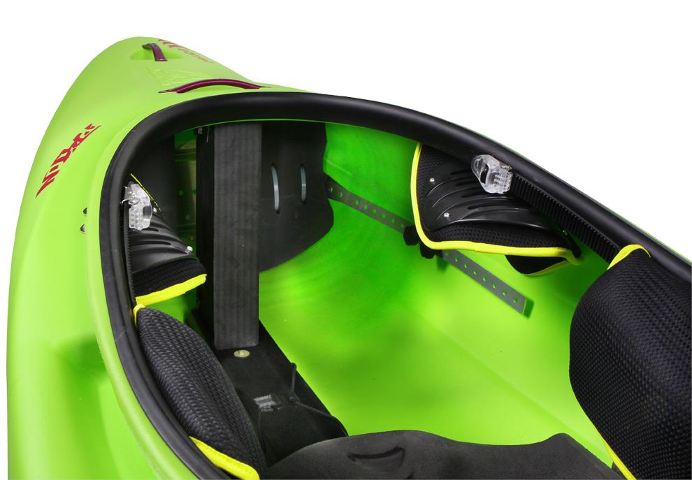 Die vollständig neu entwickelte PR-X Sitzanlage wurde für maximalen Komfort und perfektes Bootsgefühl konzipiert. Der ergonomische Schaumsitz wiegt nur 200 Gramm, ist stoßdämpfend und bietet optimalen Halt. Die Sitzposition, Schenkelstützen und Beinwinkel sind perfekt aufeinander abgestimmt und individuell anpassbar – für ein ideales Zusammenspiel von Komfort und Kontrolle im Boot.