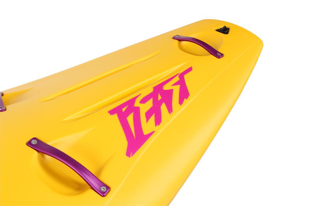 Die markanten Kanten im Unterschiff bieten exzellente Führung in der Strömung und beim Kehrwasserfahren. Sie erleichtern eine präzise Linienwahl, besonders in der Anfahrt auf Rapids. Für mittelschwere Paddler bis 80 kg ist das Beast ein vollwertiges Wildwasserboot, während schwerere Paddler es als leistungsstarken Riverrunner mit großem Volumen einsetzen können.