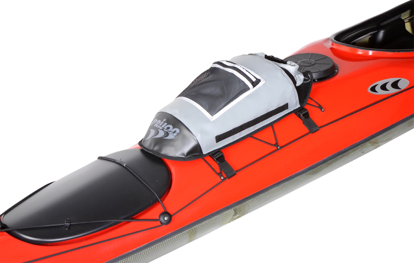 Die Decktasche DeckMaster wird mit seitlichen Befestigungslaschen und Haltegurten sicher auf dem Boot fixiert. Sie ist mit Schulterträgern versehen, so dass sie beim Landgang bequem als Rucksack mitgenommen werden kann. Zusätzlich ist sie mit einer Netztasche mit Reißverschluss ausgestattet.