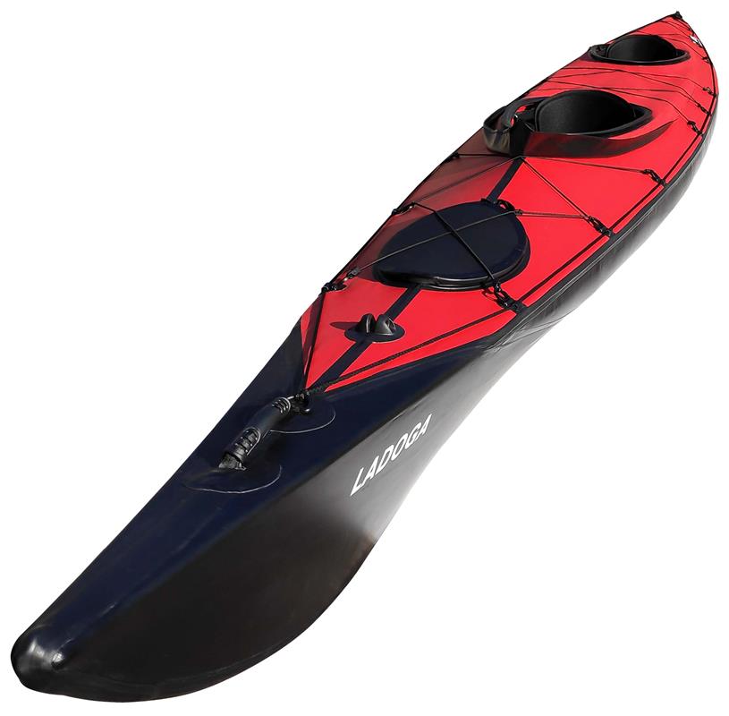 Serienmäßig sind Kielstreifen angebracht, welche die robuste PVC-PU-Haut zusätzlich zuverlässig da vor Abrieb schützen, wo eine hohe Belastung herrscht. Das abnehmbare Verdeck sorgt für eine einfachere Be- und Entladung. Das Boot ist mit seitlichen Luftschläuchen ausgestattet. Das Ladoga 2 advanced gehört zu den Faltbootzweiern mit einer der höchsten Reisegeschwindigkeiten - wenn man möchte. Daher eignet sich das Boot besonders gut für große Gewässer und weite Strecken.
